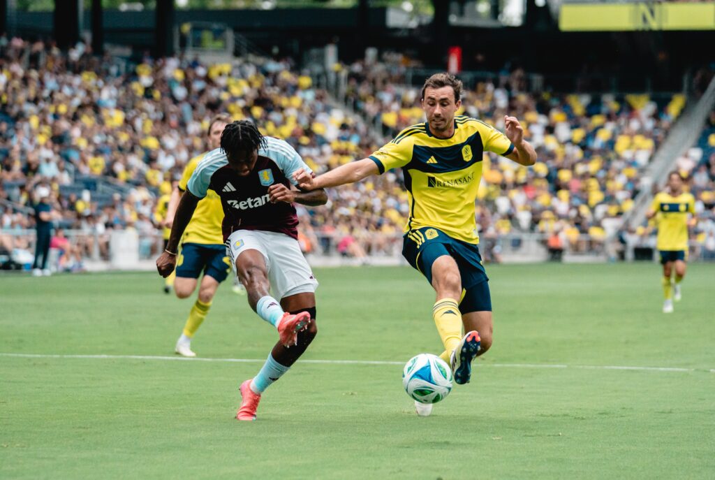 La visita del Aston Villa, equipo histórico de la Premier, impuso condiciones en el primer tiempo. Aston Villa dominó la primera mitad. En el minuto 18, Ollie Watkins conectó de cabeza un centro preciso de Lucas Digne, inaugurando el marcador ante una defensa local que aún no hallaba equilibrio táctico. El equipo visitante mostró control del juego y llegó con peligro constante. Nashville intentó responder, incluso con un disparo de Jonathan Pérez, pero no encontró profundidad suficiente en la ofensiva.